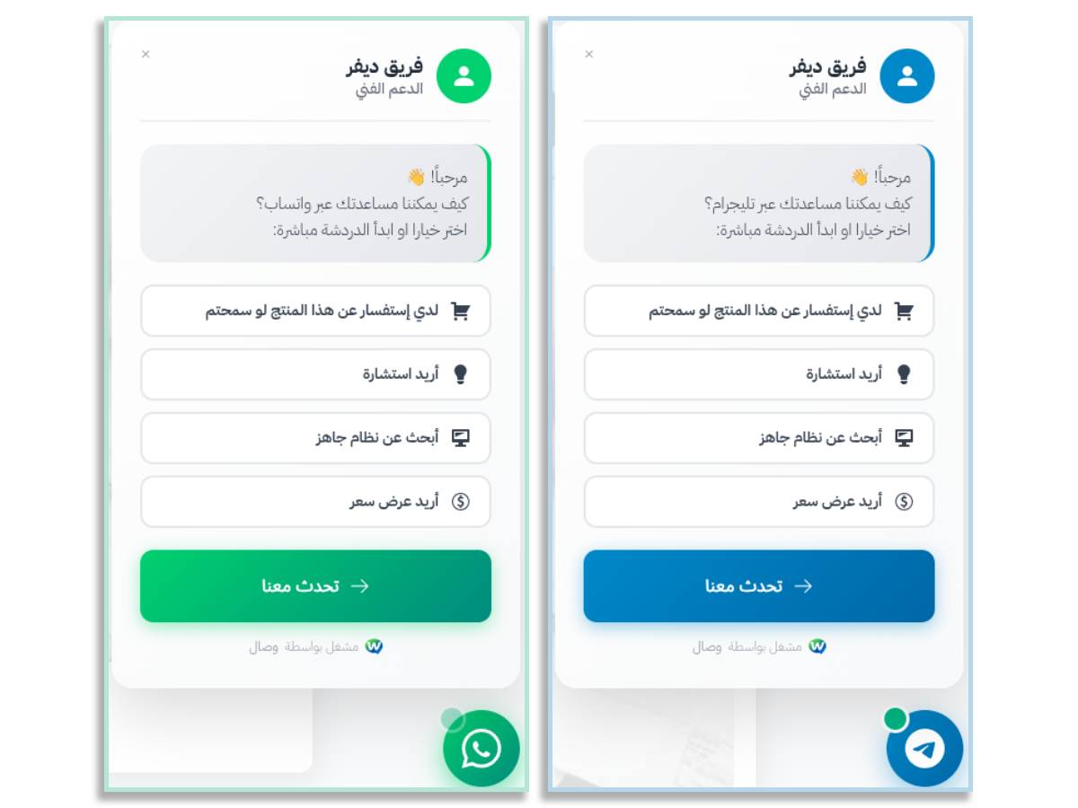 وصال هي أداة احترافية مصممة لأصحاب المواقع والمتاجر الإلكترونية الذين يعتمدون على التواصل المباشر مع العملاء.